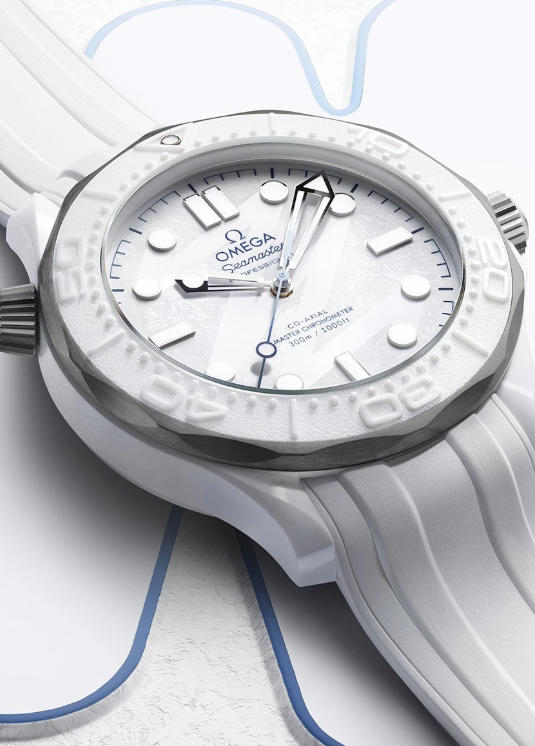 To begin the wintry inspiration, AAA replica Omega watches has crafted the timepiece in white ceramic and grade 5 titanium – two materials that combine sleek beauty with lightweight strength. These materials are finished in a variety of ways, helping to create contrasting surfaces around the design. This includes the polished-brushed case body, the sandblasted helium escape valve and crown, and the white ceramic bezel ring, which features a laser-ablated diving scale in positive relief.